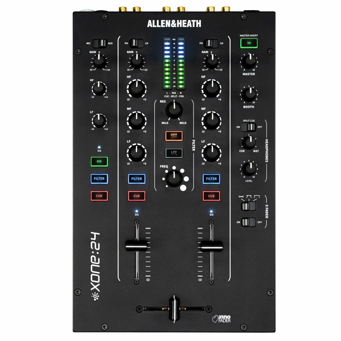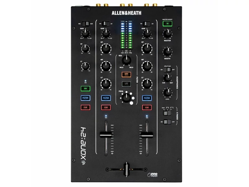 A Xone:24 egy 2+1 csatornás analóg DJ keverőpult, amely professzionális hangzást és kényelmes kezelhetőséget biztosít otthoni stúdiókhoz, kisebb klubokhoz és mobil DJ-k számára. A teljesen analóg jelút meleg, részletgazdag hangzást nyújt, míg a klasszikus Xone:VCF szűrő, a 3 sávos izolátor EQ és a precíz Mini InnoFADER keresztfader együttesen biztosítják a kreatív, dinamikus keverést. A Master FX insert lehetővé teszi külső effektek egyszerű integrálását, a háttérvilágított kezelőszervek pedig biztos láthatóságot adnak gyenge fényviszonyok között.