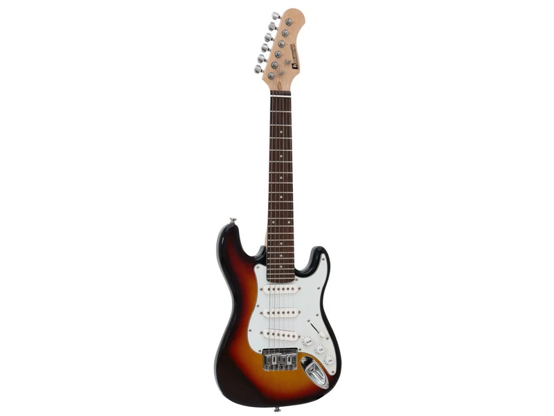Elsősorban gyermekek számára készült, belépő szintű/tanuló 1/2 méretű elektromos gitár, stratocaster formával.