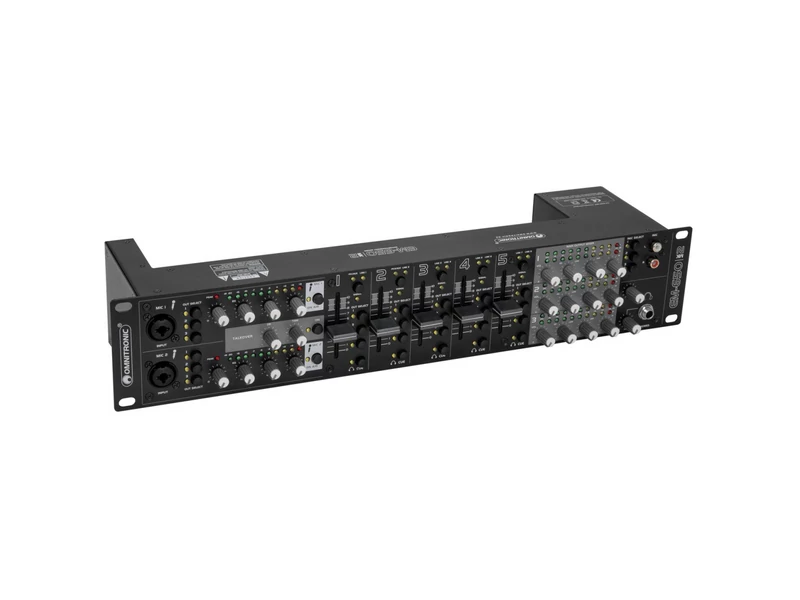 - 5 input channels with recessed gain controls on the rear panel, signal LED and smooth channel faders