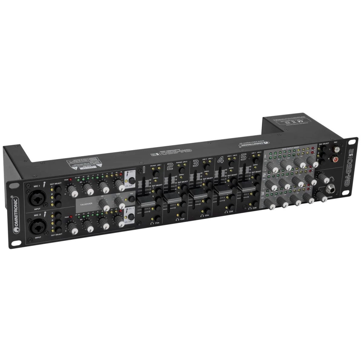 - 2 separate microphone channels with level control, 3-way equalizer and talkover button
