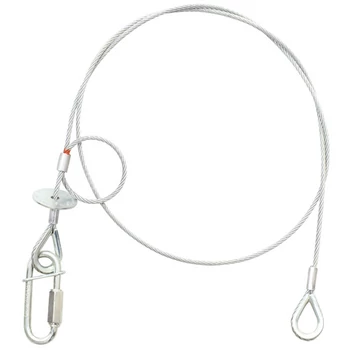 Fékmechanikás, 3mm átmérőjű sodort acél biztonsági kötél fény- és hangeszközökhöz, 20kg terhelhetőség, 1m hossz, ezüst szín.