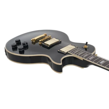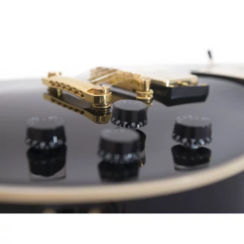 Les Paul formájú elektromos gitár, csavarozott nyak, fekete akác test és fogólap, juhar nyak, arany fekete szín, ajándék puhatok
