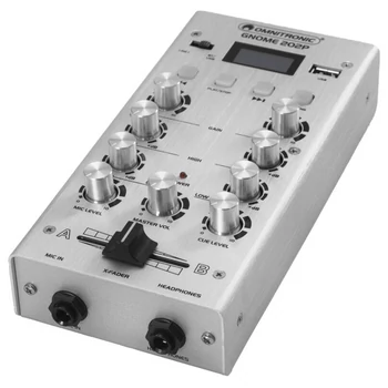2-csatornás DJ keverő Bluetooth és MP3 lejátszóval, miniatűr kivitelben, ezüst színben