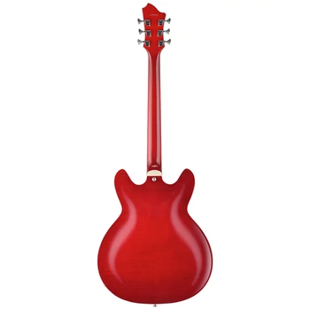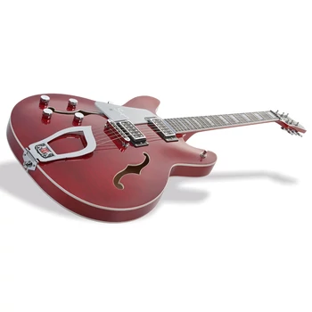 6-Húros balkezes elektromos jazz gitár, juhar nyak, nyomásos rétegelt félig üreges test, Longtravel Tune-O-Matic híd, Wild Cherry Transparent Flame szín