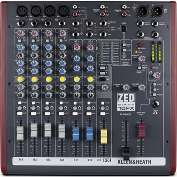 Keverőpult, 60mm-es faderrel, beépített effektprocesszorral, 4 monó/2 sztereó, USB, effekt |