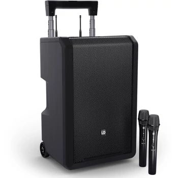 ANNY 10"-os hordozható, akkumulátoros Bluetooth PA rendszer keverővel, 2 db vezeték nélküli kézi mikrofonnal - 584-608 MHz