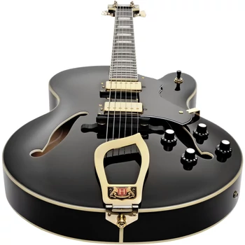 6-Húros jobbkezes elektromos jazzgitár, üreges kanadai juhar test, juharfa nyak, Resinator fogólap, Jimmy Resinator híd, fekete szín