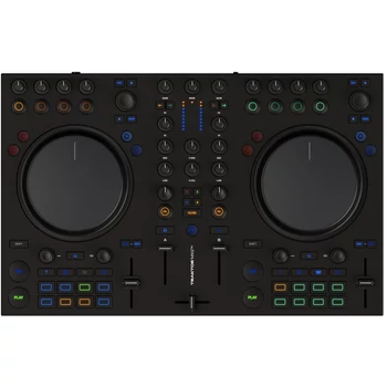 USB/MIDI DJ kontroller, 2 ch, kompakt, Traktor Pro 4 szoftverrel, 4 deck, 40+ FX, 24-bit/96kHz
