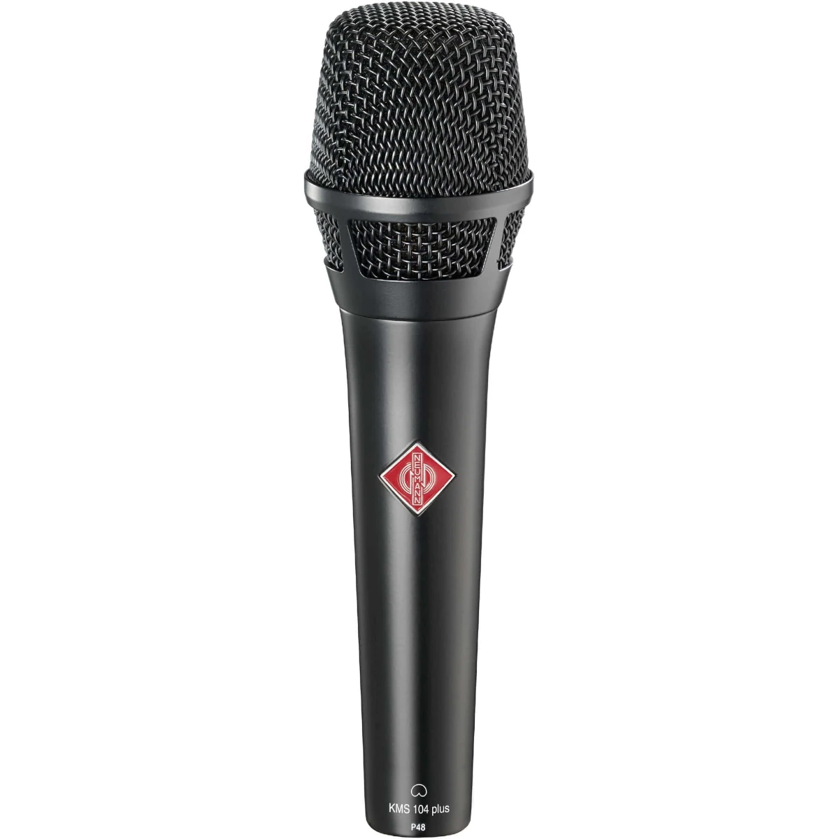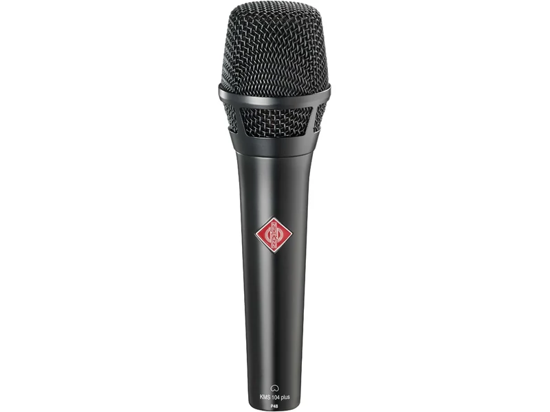 A KMS 104 plus egy stúdióminőségű énekmikrofon színpadi használatra, Neumann kondenzátor kapszulával és minden olyan tulajdonsággal, ami egy strapabíró színpadi mikrofont jellemez: kiváló popszűrő, hatalmas SPL-kapacitás és magas visszacsatolás-ellenállás, köszönhetően szűk kardioid iránykarakterisztikájának. A KMS 104-hez képest a KMS 104 plus kibővített basszusválaszt ad.