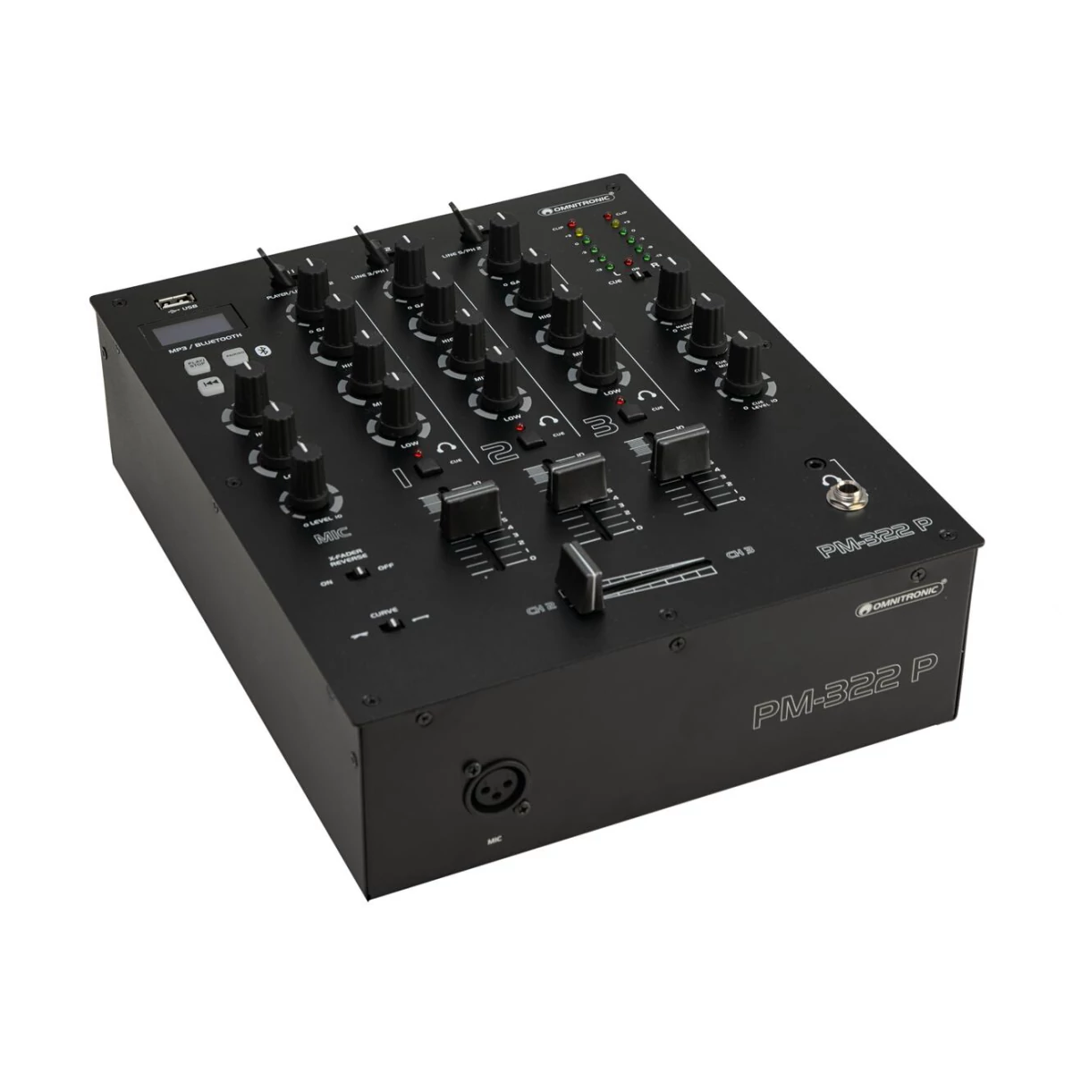 3 bemeneti csatorna, LED-es bemeneti jel/szintmérővel, 3-sávos eq-val, csatorna faderrel. Mikrofoncsatorna hangerőszabályzással, 2-sávos hangszínszabályzóval, be / ki és talk-over funkcióval. Integrált Bluetooth audio streaming okostelefonokhoz és táblagépekhez. MP3 lejátszó USB porttal és kék LCD képernyővel Crossfader csatorna hozzárendelési kapcsolókkal és állítható görbével. Sztereó kimenet: LED szintmérő.